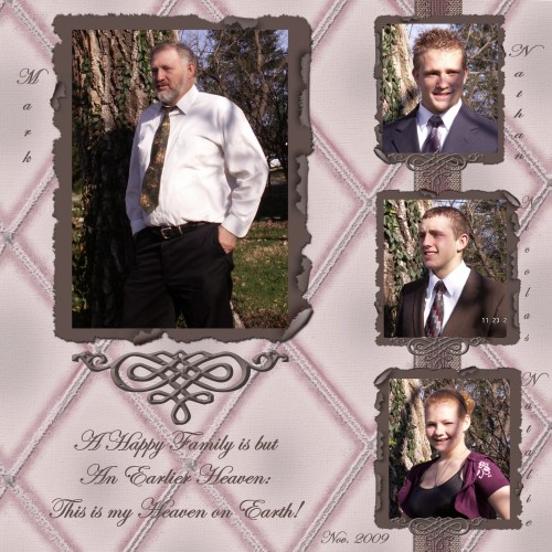 I went to a scrapbooking workshop this weekend and this is one of the pages I made. I took these photos last November. I had everyone dressed up so I made them pose for photos. I should do this more often. They usually dress for church every Sunday: maybe I'll start taking snapshots once a month or so just 'because'.
